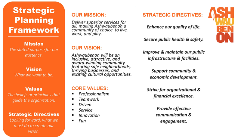“Deliver superior services for all, making Ashwaubenon a community of choice to live, work, and play."